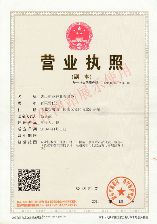 唐山荷花種業(yè)有限公司始創(chuàng)于1984年,一直秉承“科技為先,誠信為本”的發(fā)展指導(dǎo)戰(zhàn)略,注冊商標(biāo)“荷花”牌,經(jīng)過三十多年的發(fā)展,建立了從親本選育、試驗(yàn)示范、生產(chǎn)檢驗(yàn)、精選加工、推廣銷售及農(nóng)業(yè)技術(shù)咨詢一體化的經(jīng)營體系,目前擁有試驗(yàn)基地、繁育基地、制種基地、及規(guī)模化種子冷貯藏庫,完善了由科研、檢驗(yàn)、生產(chǎn)、銷售各個配套環(huán)節(jié)。荷花牌系列種子正是我們在堅(jiān)持“誠信、品質(zhì)、開拓、創(chuàng)新”的企業(yè)精神下打造的種子品牌,如今,在全國已形成強(qiáng)勢品牌效應(yīng),是一個值得信賴具有一定影響力的種子品牌,在全國廣大用戶中贏得了良好的口碑和信譽(yù)... ...